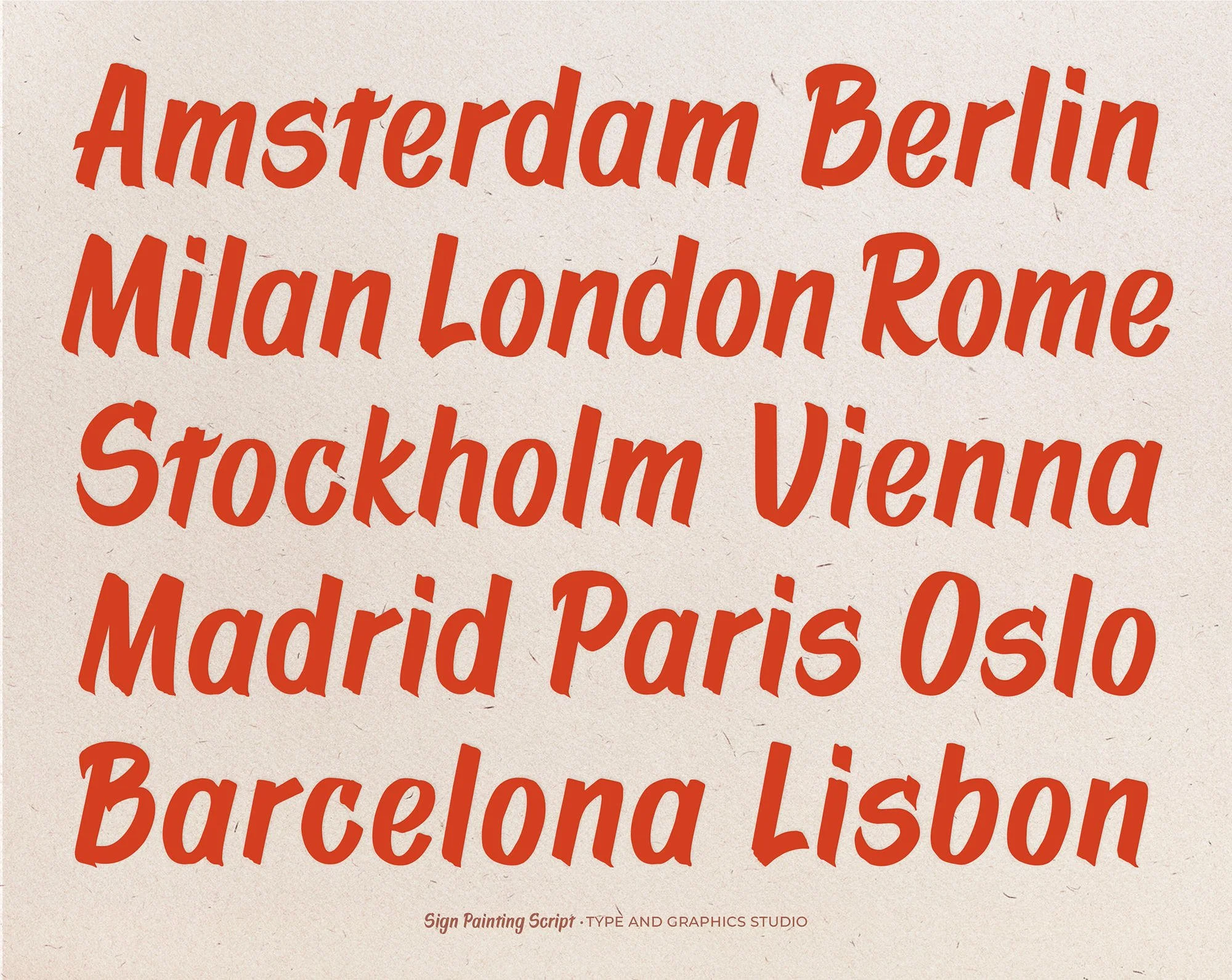 Sign Painting Script is a display typeface based on classic sign painting from the United States. It captures the rhythm and personality of hand-lettered forms while being carefully refined for consistent use in contemporary design. The font includes uppercase and lowercase letters, numerals, punctuation, ligatures, and extended Latin support, making it suitable for logos, posters, packaging, and both print and digital applications.
